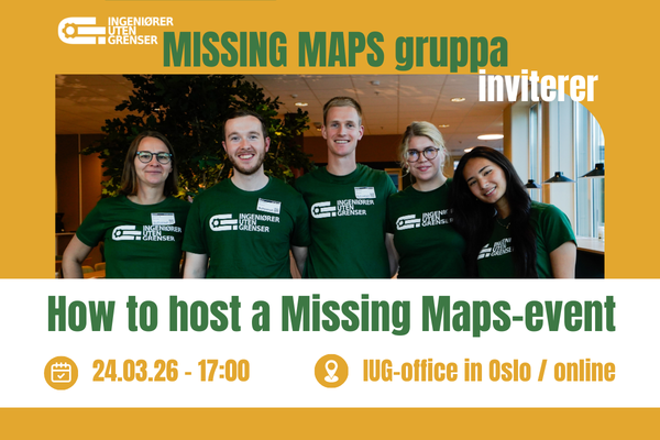Målet med møtet er at flere kjenner seg trygge på å avholde Missing Maps-eventer, forskjellige steder i landet. Vi ønsker både erfarne og nye mappere velkommen! Det blir god tid til både erfaringsdeling og spørsmål av alle slag.